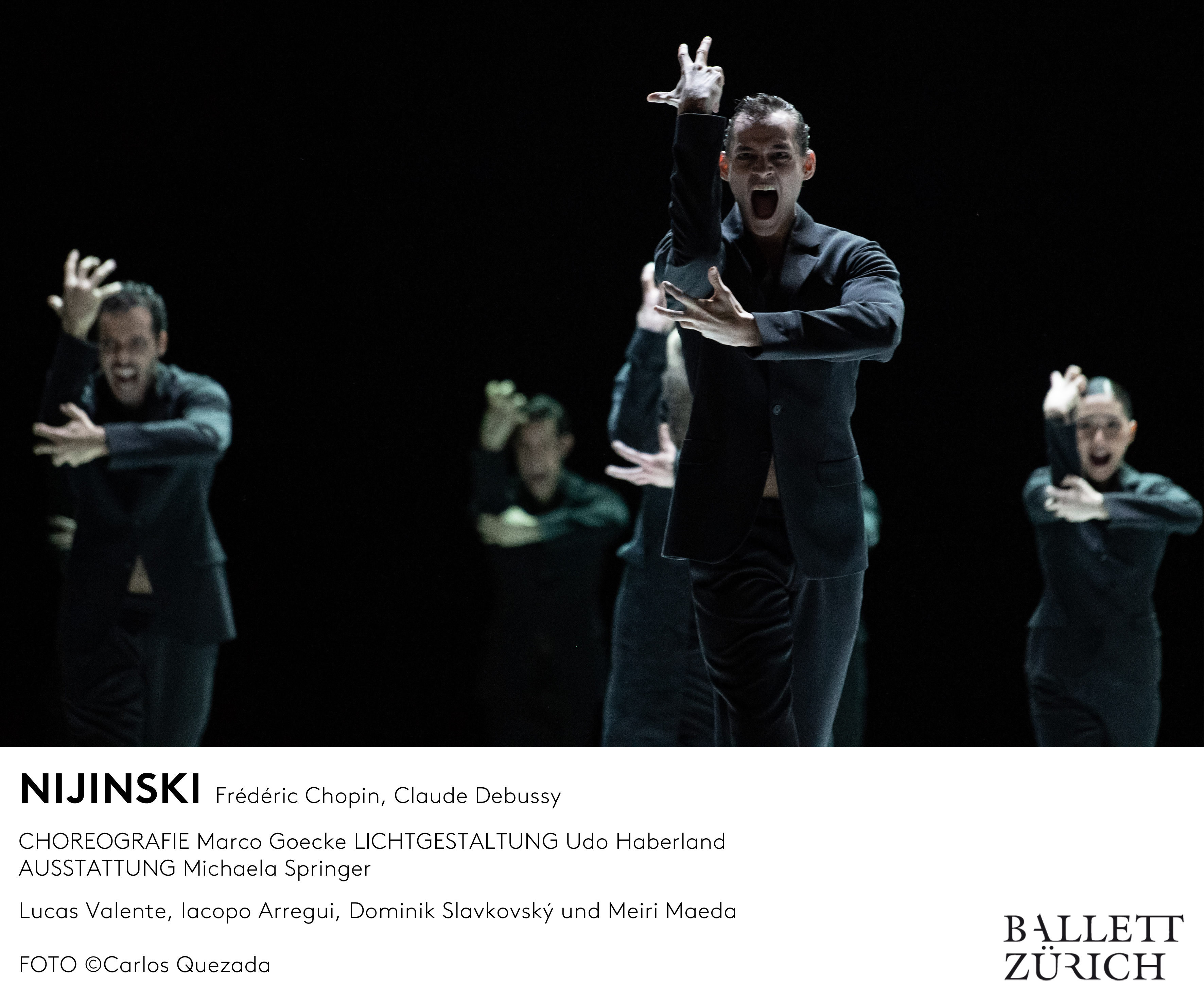 Together with Claude Debussy’s Prélude à l’après-midi d’un faune, Frédéric Chopin’s two piano concertos – played by the Swiss pianist Adrian Oetiker – will form the musical framework of this moving evening. Pavel Baleff will conduct the Philharmonia Zurich.“ Abstract of website of Ballet Zurich https://www.opernhaus.ch/en/spielplan/calendar/nijinksi/season_50348/