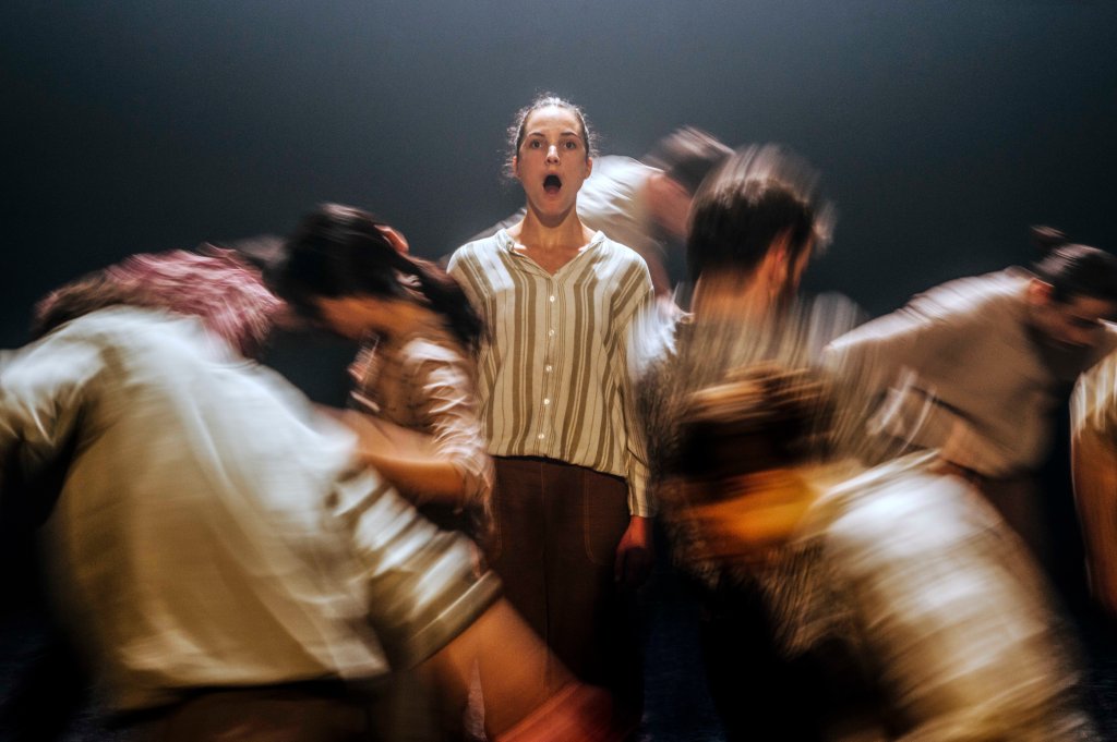 Die Tänzerinnen und Tänzer sind von Gewalt bedroht. Immer wieder fällt ein Körper leblos zu Boden, wird versucht wiederzubeleben oder weggeschleift. Angriff und Verteidigung wechseln sich ab. Doch gelingt es in den energiegeladenen Gruppenszenen, Optimismus oder Komik auszustrahlen. Eine unbeschreibliche Atmosphäre!