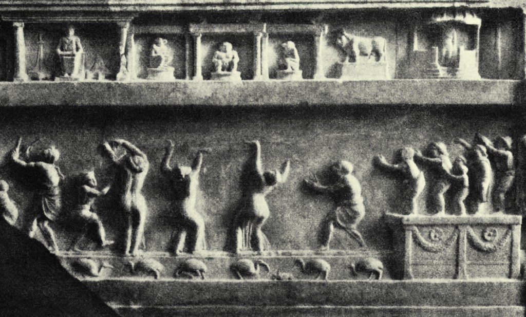 Tanz wurde im Altertum meist von Sklavinnen oder Kleinwüchsigen in Tempeln dargeboten, oftmals mit Gesang, Händeklatschen und rhythmischem Trommeln.