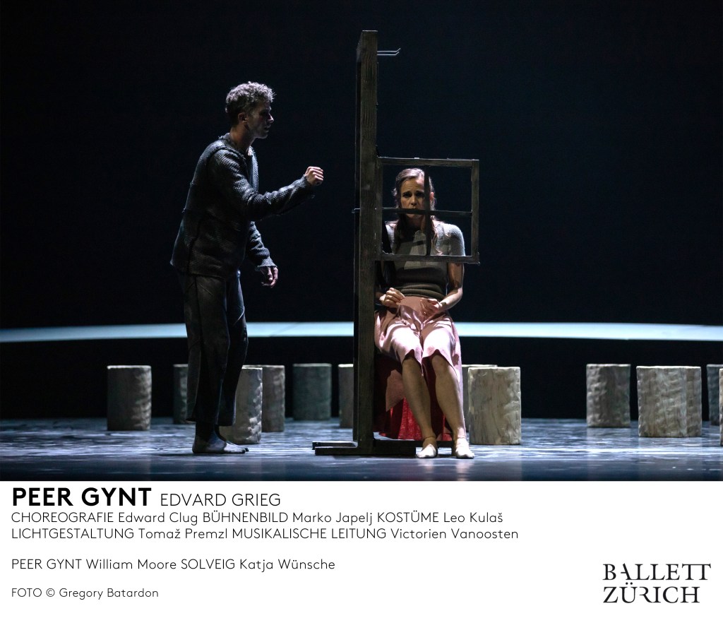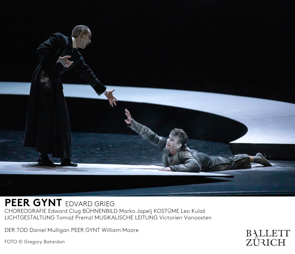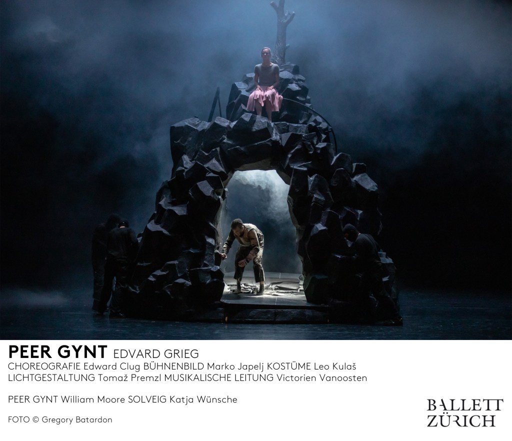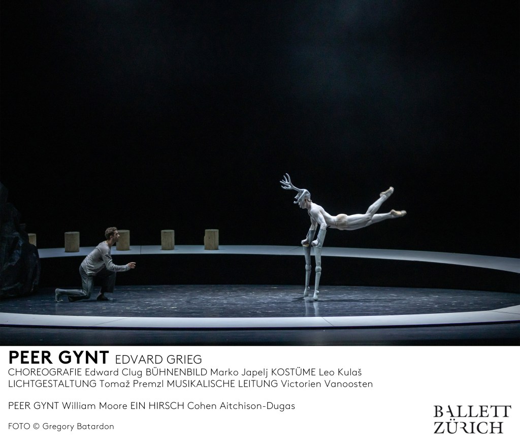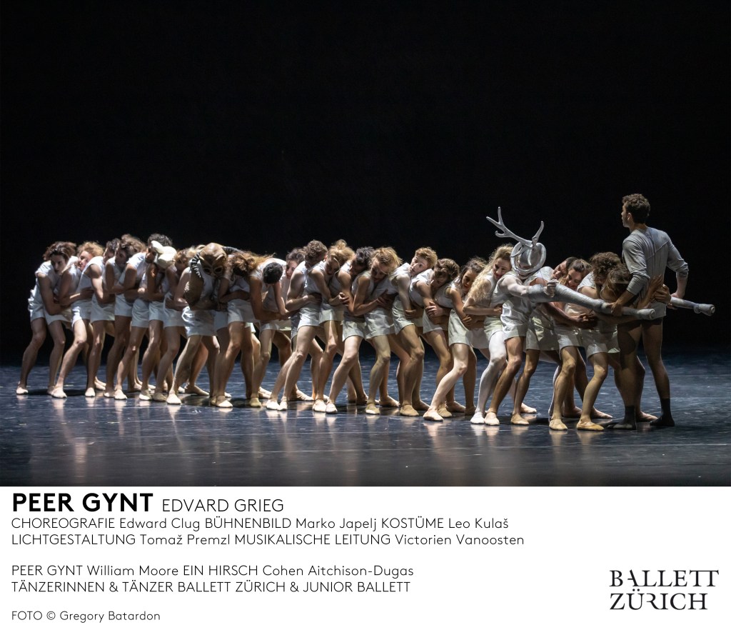 Nachdem er sich hier bereits mit seinen spektakulären Lesarten von Le Sacre du printemps und Faust – Das Ballett einen Namen gemacht hat, kehrt der slowenische Choreograf Edward Clug nach Zürich zurück. 2015 beim von ihm geleiteten Slowenischen Nationalballett in Maribor uraufgeführt, präsentiert sich sein Peer Gynt als bildgewaltiges und verrätseltes Fantasy-Spektakel und als von Surrealismus, Absurdität und Ironie inspiriertes modernes Erzählballett. Clug vereint die Versionen von Ibsen und Grieg zu einem besonderen Tanzerlebnis. Dabei verwendet er nicht nur die beiden bekannten Peer-Gynt-Suiten, sondern erweitert diese um Griegs Streichquartett g-Moll op. 27, das Klavierkonzert a-Moll op. 16 sowie Auszüge aus den Lyrischen Stücken.