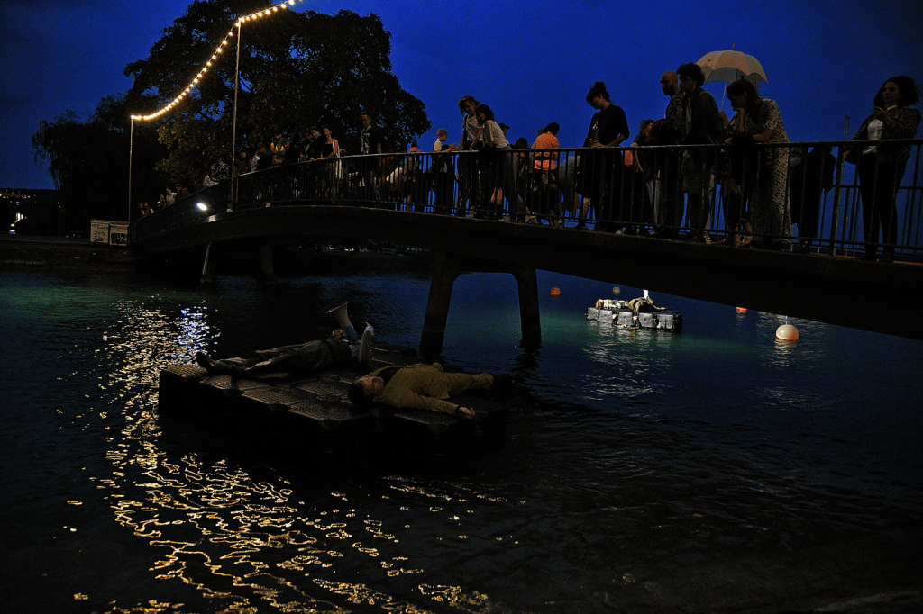 In «Waterworks» evozieren die Performer*innen eine Reihe traumhafter Fiktionen auf einer künstlichen Insel. Das Wasser ist die Bühne dafür – befreiend, verbindend, erschreckend und voller Möglichkeiten. (mvh) Text Webseite Theater Spektakel.